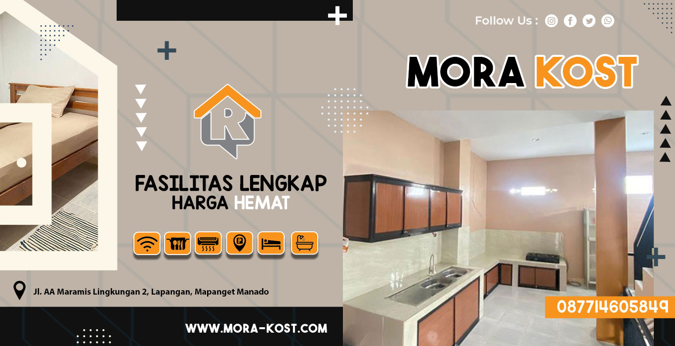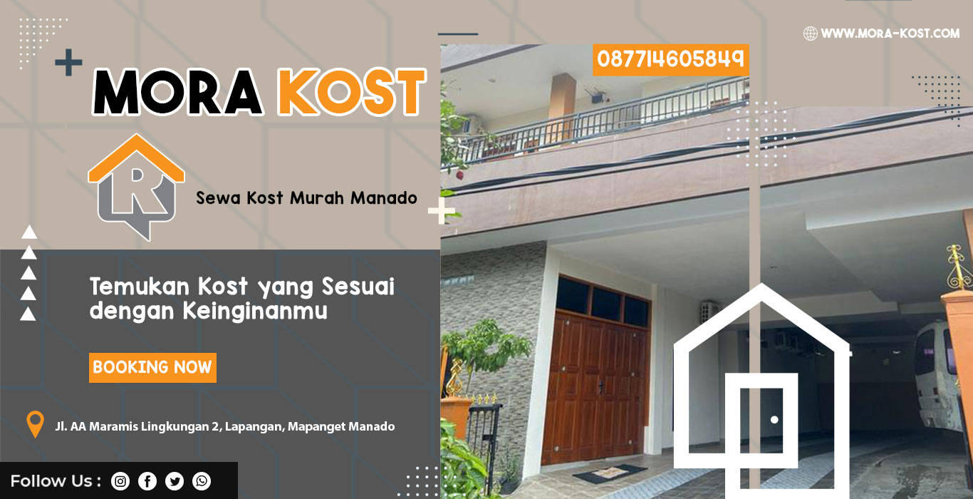 KKami adalah kost murah dan terpercaya di Kota Manado. Mora Kost menawarkan pilihan menginap atau indekost dengan fasilitas lengkap dan harga hemat. Dengan Lokasi kost di Jl. AA Maramis Lingkungan 2, Lapangan, Mapanget Manado, menjadikan Mora Kost memiliki letak yang strategis. Sebagai jasa sewa kost terbaik di Mapanget Manado kami berkomitmen untuk memberikan pelayanan yang terbaik baik dari segi kualitas atupun kuantitas. Keamanan dan kenyamanan para pengguna kost di Mora Kost adalah prioritas kami dalam menjalankan usaha ini.