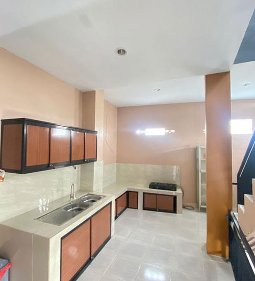 Dapur umum dengan kulkas besar dua pintu dan kitchen set