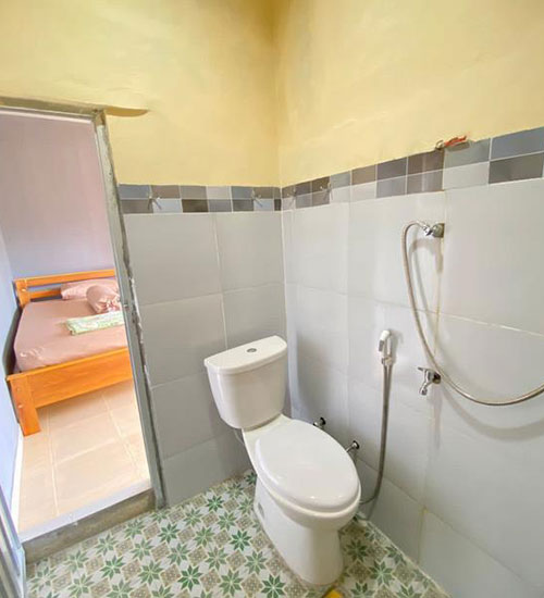 Kamar mandi di dalam, rak sabun, jet spoit, shower, kran air, ember, timba, jemuran handuk
